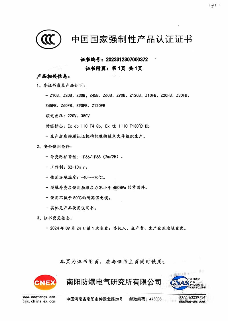 防爆Z10B Z10FB中國國家強制性產品認證證書109.2